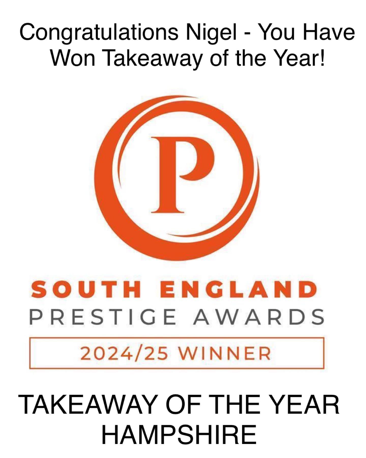 We are very proud to of been presented with the awards of "Best Takeaway in Hampshire" and "Mobile Food Business of the Year" in the 2024/2025 Prestige Business Awards.